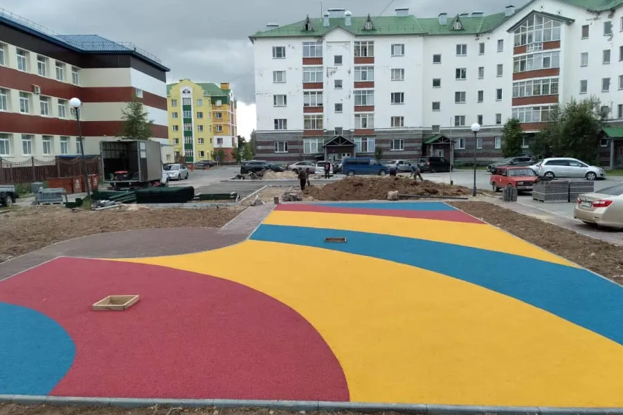 Детская площадка - многоцветная резиновая поверхность